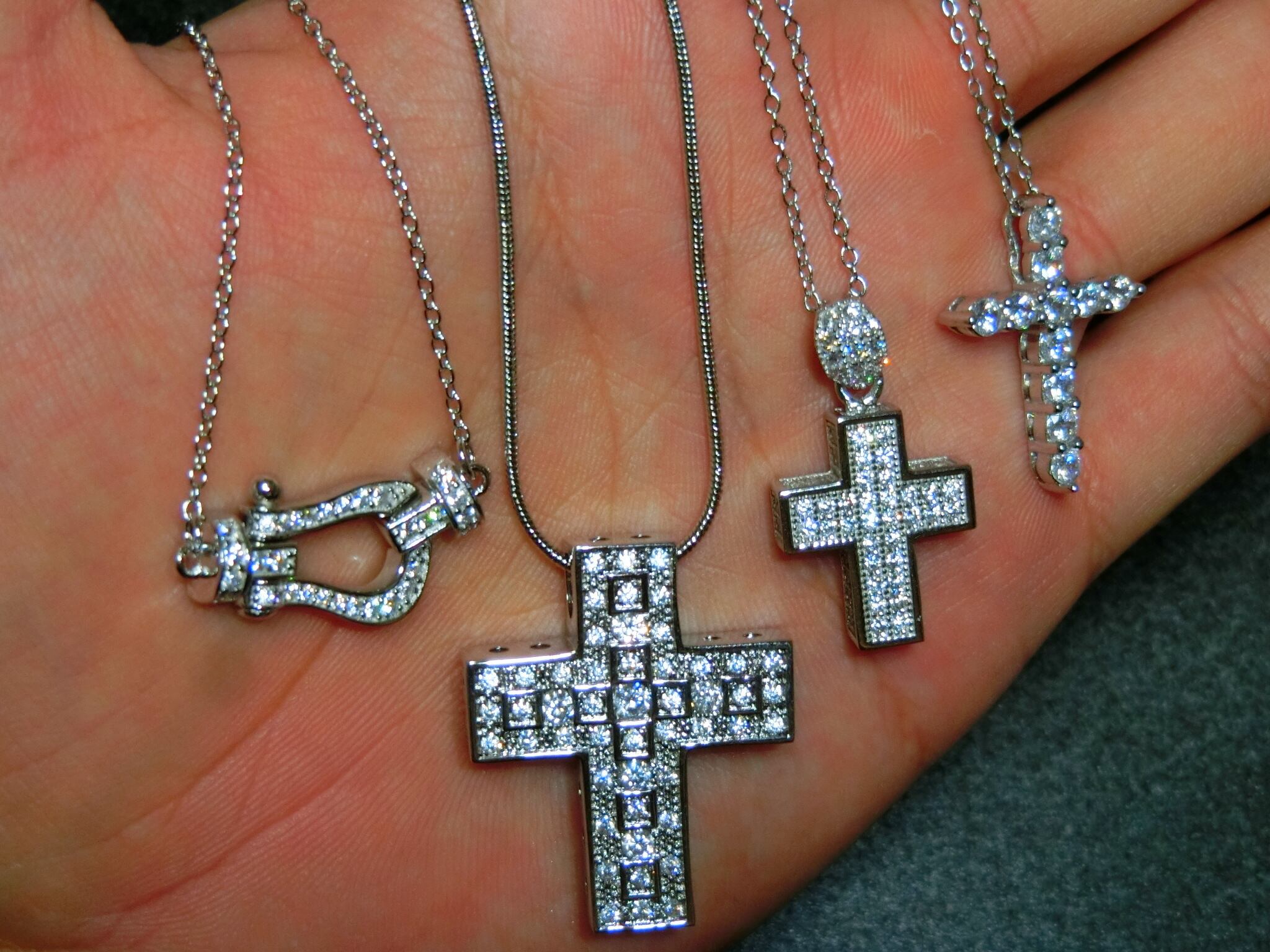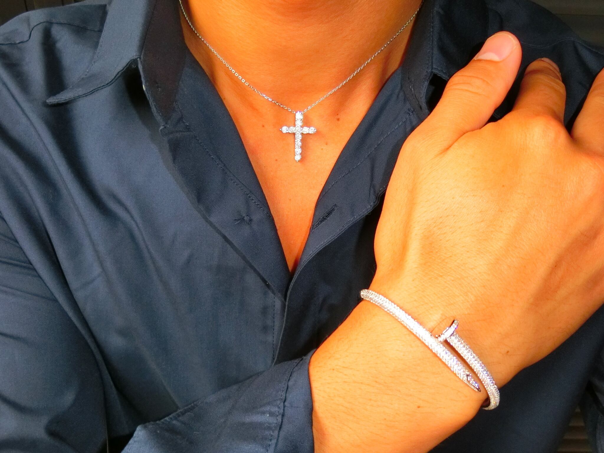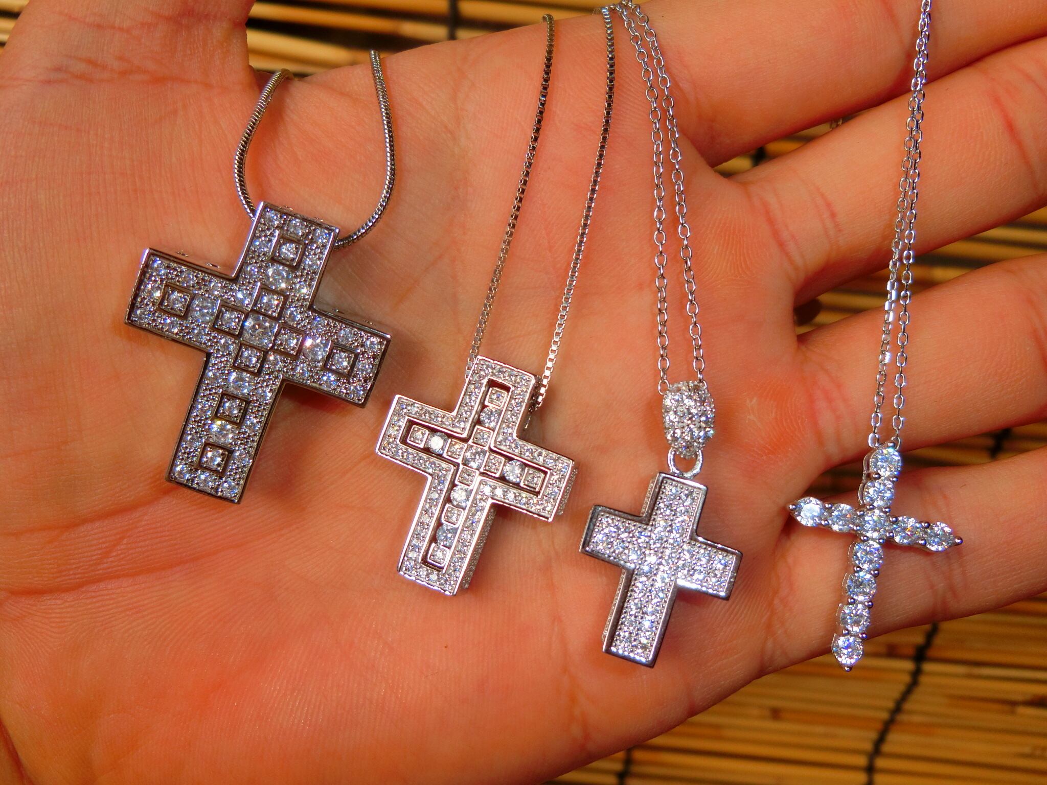 18k plating cz diamond cross necklace (white gold)