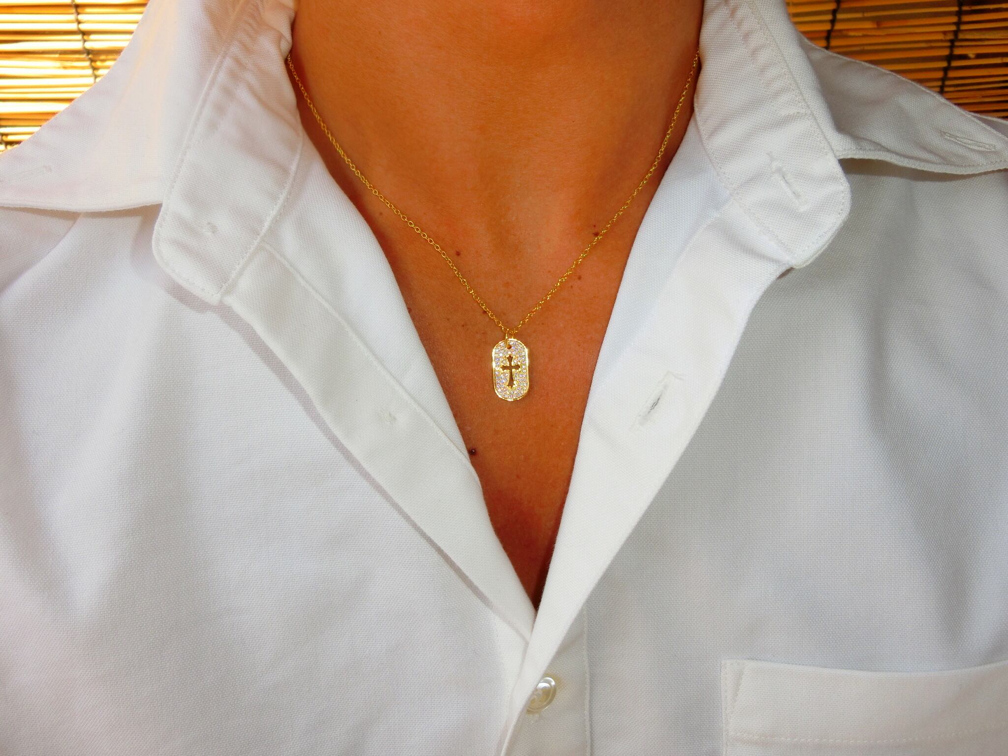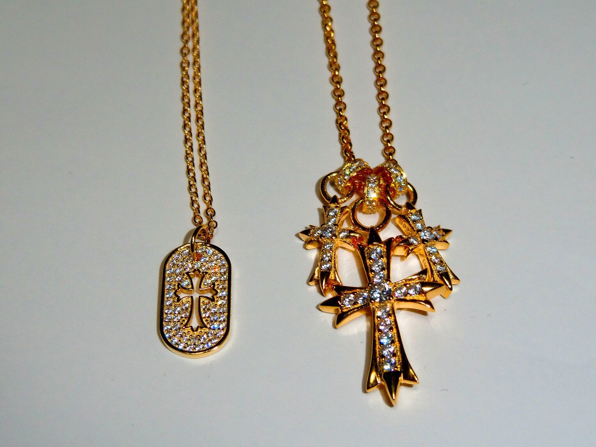 22k plating cz diamond cut out dagger necklace (yellow gold)